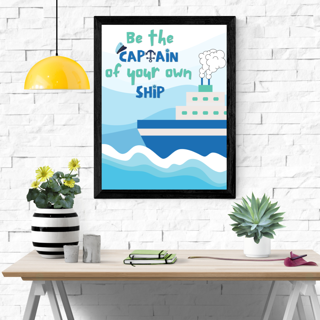 Take control and set sail towards your dreams with our Be Your Own Captain Wall Art Poster. Remind yourself that you are the captain of your own life and capable of navigating towards happiness and success. A playful reminder to be your own captain daily. Aye aye!
