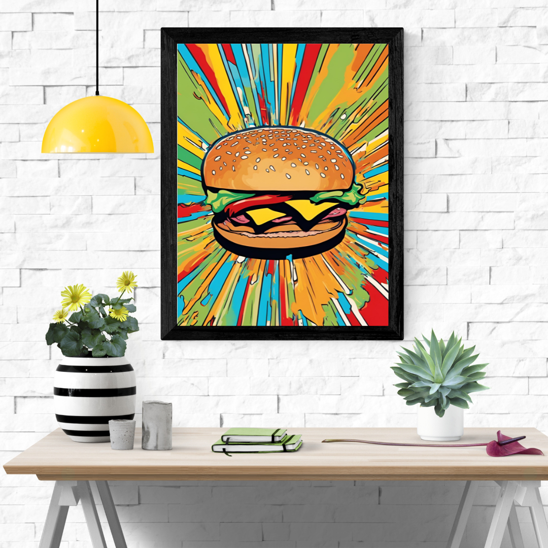 Set your walls apart with this quirky and colorful Burger Illustration Wall Art Poster. Perfect for anyone who loves a good laugh and unique decor, this poster is sure to make a statement (and hopefully work up an appetite). Hungry for more? Get yours now!
