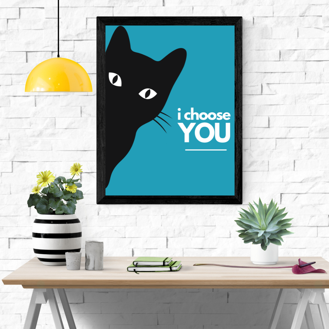 Let our Cat Chooses You Wall Art Poster add some feline flair to your space. Featuring playful cat illustrations, this quirky poster is perfect for cat lovers. With one look, you'll see that the cat has chosen you as her master. Hang it up as a reminder of your special bond with your furry friend!