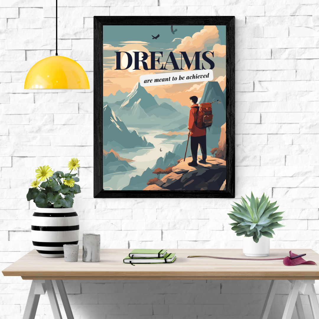 Get inspired to achieve your dreams with our Dreams Wall Art Poster. Perfect for your home or office, this quirky and fun poster will remind you to work hard and never give up on your dreams.