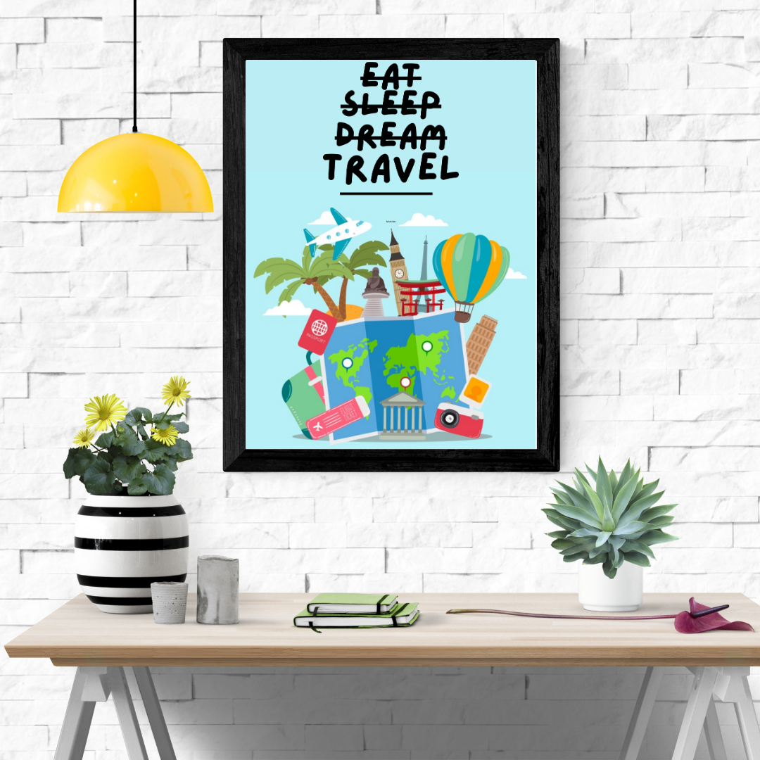Unleash your wanderlust and add some personality to your space with our Eat Sleep Dream Travel wall art poster. Perfect for those who love to eat, sleep, and dream about their next adventure. Wake up inspired every day!