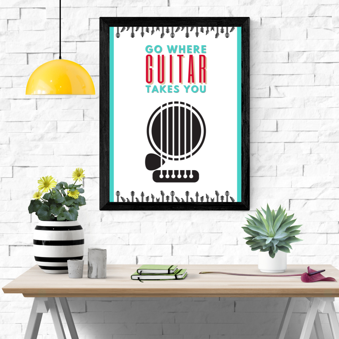 Bring some musical flair into your space with our "Go With the Guitar" wall art poster. Perfect for music lovers. Let the music take over and add some fun to your life!
