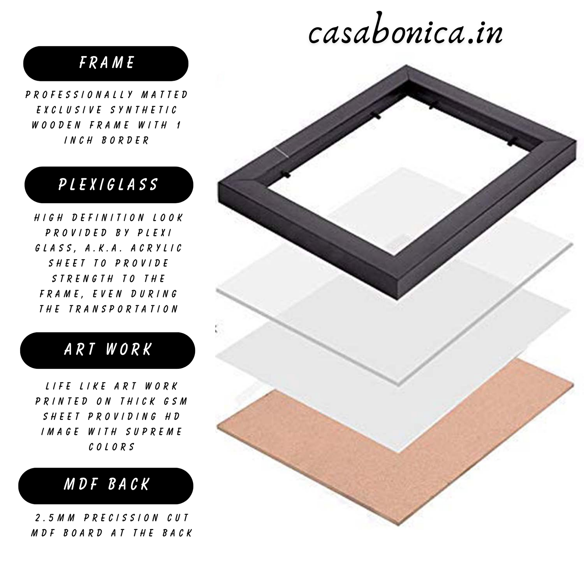 Our every frame is made of High Quality Textured Synthetic Wood. Both the front & the back has high strength Plexi Glass And MDF Back. Plexi Glass is a Fibre sheet that is long lasting & provides high definition clarity to the print.