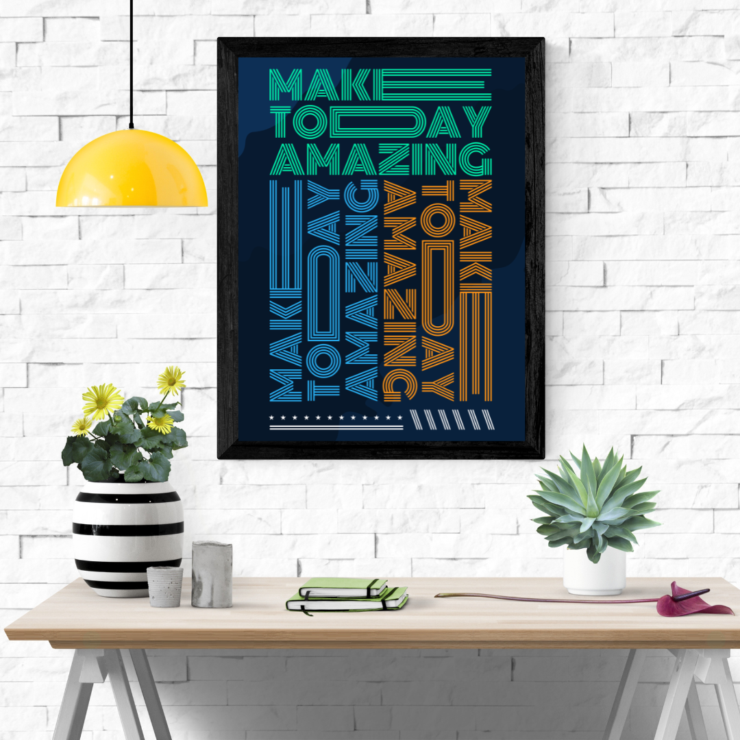 Make every day amazing with our Make Today Amazing Wall Art Poster. This daily motivation piece will help you start your day on a positive note, inspiring you to have an amazing day every day. Add some fun and motivation to your wall with our quirky and playful poster.