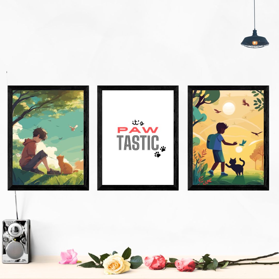 Looking to add some purrfection to your walls? Look no further than our Purrfect Trio Wall Art Poster set! With playful illustrations, this set of three posters is the purrfect addition to any cat lover's home. (Pawsitively amazing!)