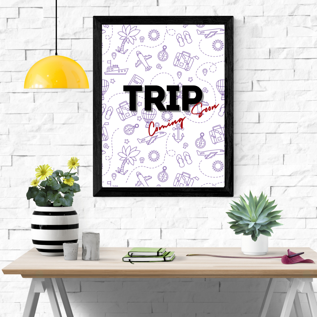 Get ready to hit the road (or the wall) with the TRIP Coming Soon Wall Art Poster. Featuring a fun "trip loading" design, this wall art is the perfect addition to any travel lover's decor. Add some excitement to your home and let the countdown to your next adventure begin!
