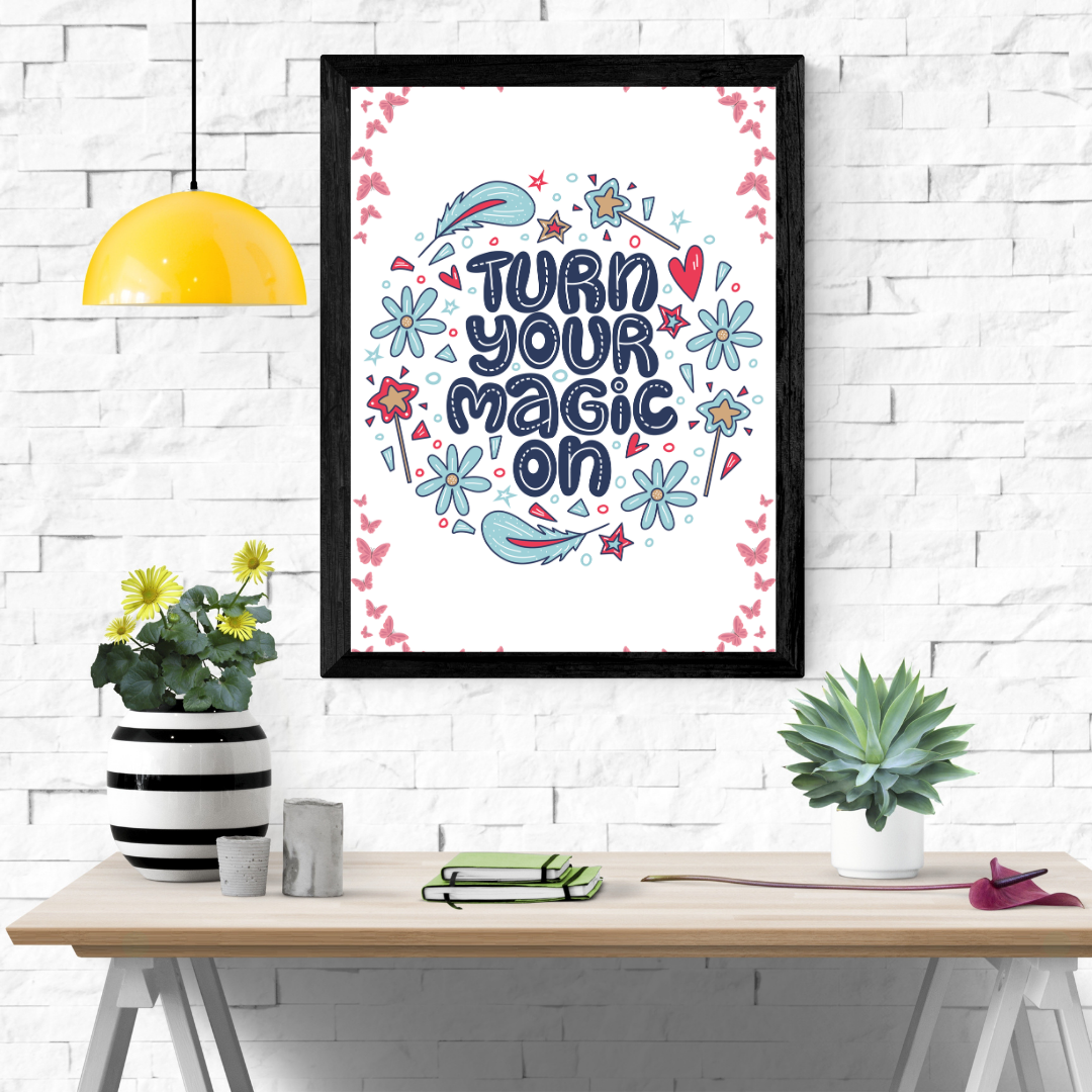 Unleash your magic with this playful wall art poster that serves as a daily reminder to keep creating magic. With quirky word play and a touch of humor, it's the perfect addition to any room. Keep that magic turned on and tap into your limitless potential.